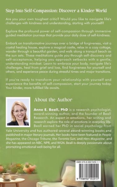 Step Into Self-Compassion: Discover a Kinder World Are you your own toughest critic? Would you like to navigate life's challenges with kindness and understanding, starting with yourself? Explore the profound power of self-compassion through immersive guided meditation journeys that provide your daily dose of self-kindness. Embark on transformative journeys over a bridge of forgiveness, visit a crystal healing house, explore a magical castle, relax in a cozy cottage, wander through a beautiful garden, and walk along a tranquil beach as the sun sets. These meditations guide you through self-discovery and self-acceptance, helping you approach setbacks with a gentle, understanding mindset. Learn to embrace your body, navigate life's challenges, heal from grief and loss, find forgiveness for yourself and others, and experience peace during stressful times and major transitions. If you're ready to transform your relationship with yourself and experience the benefits of self-compassion, start your journey today. Your kinder, more fulfilled life awaits.