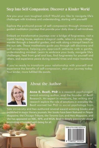 Step Into Self-Compassion: Discover a Kinder World Are you your own toughest critic? Would you like to navigate life's challenges with kindness and understanding, starting with yourself? Explore the profound power of self-compassion through immersive guided meditation journeys that provide your daily dose of self-kindness. Embark on transformative journeys over a bridge of forgiveness, visit a crystal healing house, explore a magical castle, relax in a cozy cottage, wander through a beautiful garden, and walk along a tranquil beach as the sun sets. These meditations guide you through self-discovery and self-acceptance, helping you approach setbacks with a gentle, understanding mindset. Learn to embrace your body, navigate life's challenges, heal from grief and loss, find forgiveness for yourself and others, and experience peace during stressful times and major transitions. If you're ready to transform your relationship with yourself and experience the benefits of self-compassion, start your journey today. Your kinder, more fulfilled life awaits.