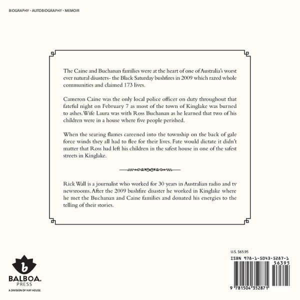 The Caine and Buchanan families were at the heart of one of Australia's worst ever natural disasters- the Black Saturday bushfires in 2009 which razed whole communities and claimed 173 lives. Cameron Caine was the only local police officer on duty throughout that fateful night on February 7 as most of the town of Kinglake was burned to ashes. Wife Laura was with Ross Buchanan as he learned that two of his children were in a house where five people perished. When the searing flames careened into the township on the back of gale force winds they all had to flee for their lives. Fate would dictate it didn't matter that Ross had left his children in the safest house in one of the safest streets in Kinglake.