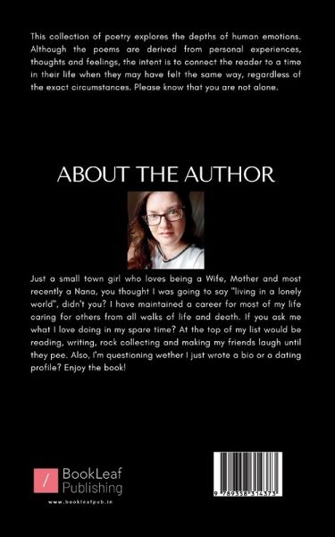 This collection of poetry explores the depths of human emotions. Although the poems are derived from personal experiences, thoughts and feelings, the intent is to connect the reader to a time in their life when they may have felt the same way, regardless of the exact circumstances. Please know that you are not alone.