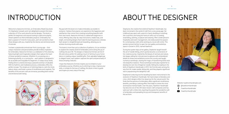 Thready or knot, here we come... easy animal embroidery patterns with iron-on transfers to make your next embroidery project a breeze!In this innovative, high-quality booklet you'll discover 12 beautiful animal designs, aimed at complete newcomers to embroidery, as well as more experienced stitchers looking for an easy, mindful project.- Beginner-friendly booklet featuring step-by-step stitch guides, full-colour photos and thread keys.- Tear-out heat-activated transfers take all the hassle out of transferring the designs onto your fabric.- 12 creative designs to choose from: Cat, Hedgehog, Puffin, Alpaca, Sheep, Unicorn, Elephant, Butterfly, Hare, Fox, Bee and Giraffe.Learn a range of hand embroidery stitches, create lovely keepsakes, and enjoy the process with this great-value embroidery experience, from crafting expert Stephanie Carswell, founder of Hawthorn Handmade.