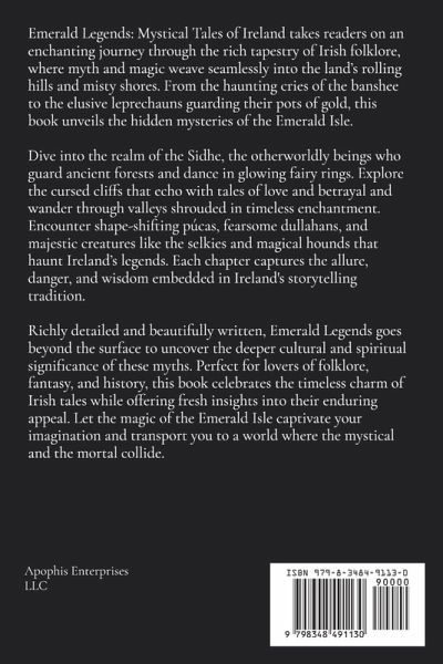 Emerald Legends: Mystical Tales of Ireland takes readers on an enchanting journey through the rich tapestry of Irish folklore, where myth and magic weave seamlessly into the land's rolling hills and misty shores. From the haunting cries of the banshee to the elusive leprechauns guarding their pots of gold, this book unveils the hidden mysteries of the Emerald Isle. Dive into the realm of the Sidhe, the otherworldly beings who guard ancient forests and dance in glowing fairy rings. Explore the cursed cliffs that echo with tales of love and betrayal and wander through valleys shrouded in timeless enchantment. Encounter shape-shifting púcas, fearsome dullahans, and majestic creatures like the selkies and magical hounds that haunt Ireland's legends. Each chapter captures the allure, danger, and wisdom embedded in Ireland's storytelling tradition. Richly detailed and beautifully written, Emerald Legends goes beyond the surface to uncover the deeper cultural and spiritual significance of these myths. Perfect for lovers of folklore, fantasy, and history, this book celebrates the timeless charm of Irish tales while offering fresh insights into their enduring appeal. Let the magic of the Emerald Isle captivate your imagination and transport you to a world where the mystical and the mortal collide.