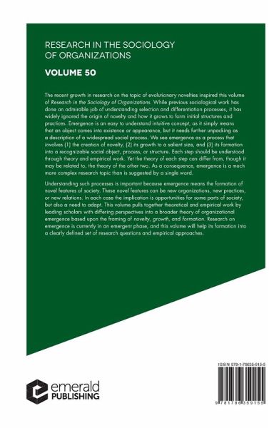 The recent growth in research on the topic of evolutionary novelties inspired this volume of Research in the Sociology of Organizations. While previous sociological work has done an admirable job of understanding selection and differentiation processes, it has widely ignored the origin of novelty and growth to form initial structures and practices.