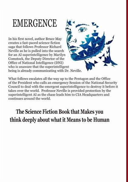 In his first novel, author H. Bruce May creates a fast-paced science fiction saga that follows Professor Richard Neville as he is pulled into the search for superintelligence AI by the Marilyn Comstock, Deputy Director of the Office of National Intelligence (DNI) who is unaware that the superintelligent being is already communicating with Dr. Neville. What follows escalates all the way up to the Pentagon and the Office of the President who calls an emergency session of the National Security Council to deal with the emergent superintelligence to destroy it before it takes over the world. Professor Neville is provided protection by the superintelligent AI as the chase leads him to CIA Headquarters and continues around the world. Professor Neville could never have imagined the outcome of his journey into human and machine consciousness and the truths revealed about what it means to be human.