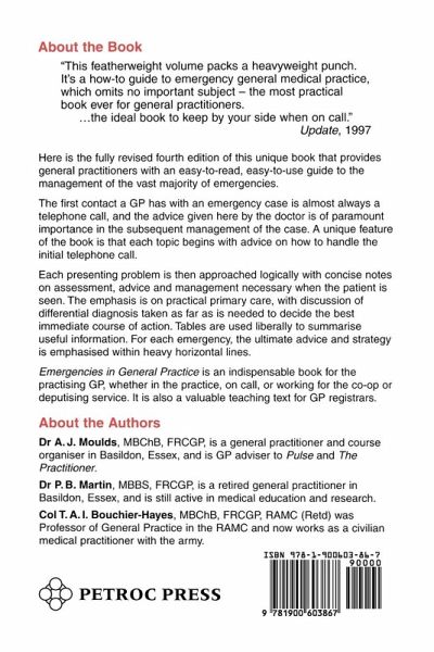 "This featherweight volume packs a heavyweight punch. It's a how-to guide to emergency general medical practice, which omits no important subject - the most practical book ever for general practitioners...the ideal book to keep by your side when on call." Update, 1997 Here is the fully revised fourth edition of this unique book that provides general practitioners with an easy-to-read, easy-to-use guide to the management of the vast majority of emergencies. The first contact a GP has with an emergency case is almost always a telephone call, and the advice given here by the doctor is of paramount importance in the subsequent management of the case. A unique feature of the book is that each topic begins with advice on how to handle the initial telephone call. Each presenting problem is then approached logically with concise notes on assessment, advice and management necessary when the patient is seen. The emphasis is on practical primary care, with discussion of differential diagnosis taken as far as is needed to decide the best immediate course of action. Tables are used liberally to summarise useful information.For each emergency, the ultimate advice and strategy is emphasised within heavy horizontal lines. Emergencies in General Practice is an indispensable book for the practising GP, whether in the practice, on call, or working for the co-op or deputising service. It is also a valuable teaching text for GP registrars.