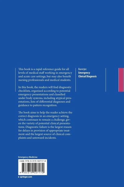 The aim of this book is to help the reader achieve the correct diagnosis in the emergency setting, which continues to remain a challenge, given the variety of potential clinical presentations. Diagnostic failure is the largest reason for delays in provision of appropriate treatment, which can be life-saving, and the largest source of clinical complaints and untoward incidents leading to poor clinical outcomes and to litigation.