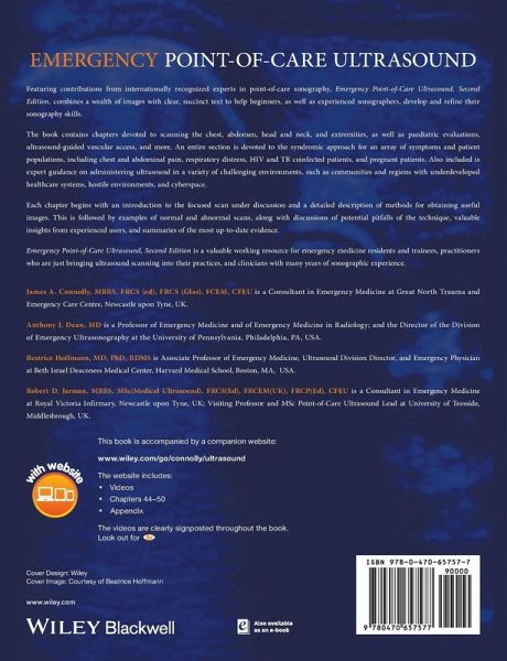 James A. Connolly, MBBS, FRCS (ed), FRCS (Glas), FCEM, CFEU is a Consultant in Emergency Medicine at Great North Trauma and Emergency Care Centre, Newcastle upon Tyne, UK. Anthony J. Dean, MD is a Professor of Emergency Medicine and of Emergency Medicine in Radiology; and the Director of the Division of Emergency Ultrasonography at the University of Pennsylvania, Philadelphia, PA, USA. Beatrice Hoffmann, MD, PhD, RDMS is Associate Professor of Emergency Medicine, Ultrasound Division Director, and Emergency Physician at Beth Israel Deaconess Medical Center, Harvard Medical School, Boston, MA, USA. Robert D. Jarman, MBBS, MSc(Medical Ultrasound), FRCS(Ed), FRCEM(UK), FRCP(Ed), CFEU is a Consultant in Emergency Medicine at Royal Victoria Infirmary, Newcastle upon Tyne, UK; Visiting Professor and MSc Point-of-Care Ultrasound Lead at University of Teesside, Middlesbrough, UK.