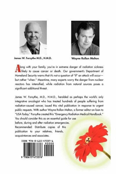 With your family, you're in extreme danger of radiation sickness likely to cause cancer or death. The Department of Homeland Security warns that it's not a question of "if" an attack will occur but rather "when." Meantime, as radiation from Japan enters North America's milk supply, many experts worry the danger from nuclear reactors has intensified, while radiation from natural sources poses a significant additional threat. James W. Forsythe, M.D., H.M.D., heralded as perhaps the world's only integrative oncologist who has treated hundreds of people suffering from radiation-caused cancer, issued this vital publication in response to urgent public requests from around the globe. With author Wayne Rollan Melton, a former editor-on-loan to "USA Today," Forsythe created this "Emergency Radiation Medical Handbook."