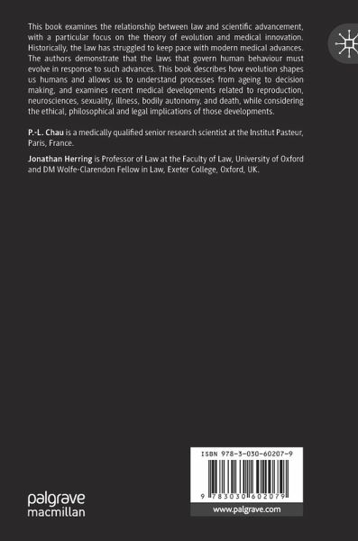 This book examines the relationship between law and scientific advancement, with a particular focus on the theory of evolution and medical innovation. Historically, the law has struggled to keep pace with modern medical advances. The authors demonstrate that the laws that govern human behaviour must evolve in response to such advances. This book describes how evolution shapes us humans and allows us to understand processes from ageing to decision making, and examines recent medical developments related to reproduction, neurosciences, sexuality, illness, bodily autonomy, and death, while considering the ethical, philosophical and legal implications of those developments.