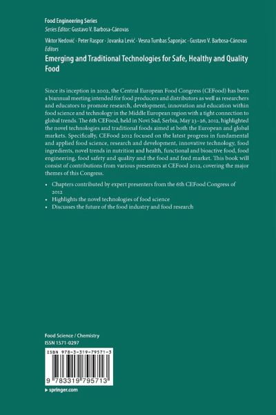 Part I: Safe and Healthy Food.- Safe Food and Healthy Diets.- Food Supply Chains vs. Food Supply Nets.- Food Safety Aspects Concerning Traditional Foods.- Factors Affecting Elimination of Carcinogenic Compounds from Food Products.- Acrylamide Formation in Foods: Role of Composition and Processing.- Detection of Bioactive Compounds in Plants and Food Products.- Beer as an Integral Part of Healthy Diets: Current Knowledge and Perspectives.- Strategy for Screening of Antioxidant Constituents in Protein Hydrolysates.- Part II: Food Quality.- Heat-induced Casein-Whey Protein Interactions in Caprine Milk: Whether are Similar to Bovine milk?.- Whey Protein Edible Coatings: Recent Developments and Applications.- Physical and Sensory Properties of High Added Value Rice Extrudates.- Quality Standardization of Traditional Dry Fermented Sausages: Case of Petrovská Klobása.- Part III: Food Biotechnology.- Traditional and Emerging Technologies for Autochthonous Lactic Acid Bacteria Application.- Effect of Cell Immobilization on Properties of Presumptive Probiotics.- The Biocide and Antibiotic Resistance in Campylobacter Jejuni and Campylobacter Coli.- Microbial Polysaccharides: Between Oil Wells, Food and Drugs.- Part IV: Food Engineering.- Food Cold Chain Management and Optimization.- Encapsulation Technologies for Food Industry.- Innovations in Food Packaging Materials.- Food Processing using Supercritical Fluids.- Aqueous Fractionation of Dry-milled Corn Germ for Food Protein Production.