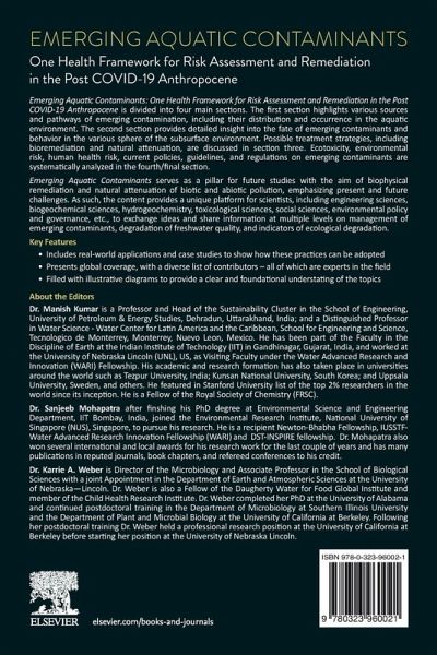 Emerging Aquatic Contaminants: One Health Framework for Risk Assessment and Remediation in the Post COVID-19 Anthropocene highlights various sources and pathways of emerging contamination, including their distribution, occurrence, and fate in the aquatic environment. The book provides detailed insight into emerging contaminants' mass flow and behavior in various spheres of the subsurface environment. Possible treatment strategies, including bioremediation and natural attenuation, are discussed. Ecotoxicity, relative environmental risk, human health risk, and current policies, guidelines, and regulations on emerging contaminants are analyzed. This book serves as a pillar for future studies, with the aim of bio-physical remediation and natural attenuation of biotic and abiotic pollution.