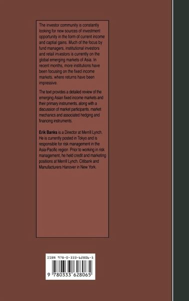 The investor community is constantly looking for new sources of investment opportunity in the form of current income and capital gains. Much of the focus by fund managers, institutional investors and retail investors is currently on the global emerging markets of Asia where over $1 trillion of infrastructure and development projects will have to be funded over the next decade. In recent months, more institutions have been focusing on the fixed income markets, where returns have been impressive. The text from credit risk authority Erik Banks provides a detailed review of the emerging Asian fixed income markets and their primary instruments, along with a discussion of market participants, market mechanics and associated hedging and financing instruments.