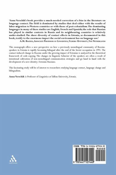 Anna Verschik offers a new perspective on how a previously monolingual community of Russian-speakers in Estonia is rapidly becoming bilingual after the end of the Soviet occupation in 1991. The contact-induced change in Russian under the growing impact of Estonian is analysed in the theoretical framework of code-copying. Changes in linguistic behaviour of the speakers are often a result of intentional cultivation of non-monolingual communication strategies and language policies, and go hand in hand with the development of a new identity, 'Estonian Russians'. Emerging Bilingual Speech is a fascinating study that will be of interest to researchers studying language contact, language change and bilingualism.