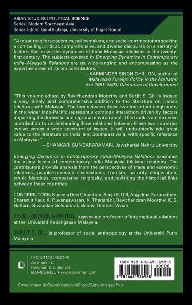 This edited volume examines the many facets of contemporary Malaysia-India bilateral relations. The contributors provide analysis from the perspectives of trade and economic relations, people-to-people connections, tourism, security cooperation, ethnic identities, comparative religiosity, and revisiting the historical links between these countries.