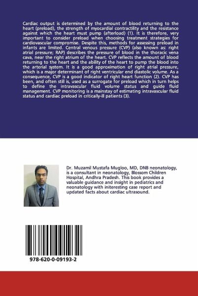 Cardiac output is determined by the amount of blood returning to the heart (preload), the strength of myocardial contractility and the resistance against which the heart must pump (afterload) (1). It is therefore, very important to consider preload when choosing treatment strategies for cardiovascular compromise. Despite this, methods for assessing preload in infants are limited. Central venous pressure (CVP) (also known as: right atrial pressure; RAP) describes the pressure of blood in the thoracic vena cava, near the right atrium of the heart. CVP reflects the amount of blood returning to the heart and the ability of the heart to pump the blood into the arterial system. It is a good approximation of right atrial pressure, which is a major determinant of right ventricular end diastolic volume. As a consequence, CVP is a good indicator of right heart function (2). CVP has been, and often still is, used as a surrogate for preload which in turn helps to define the intravascular fluid volume status and guide fluid management. CVP monitoring is a mainstay of estimating intravascular fluid status and cardiac preload in critically-ill patients (3).