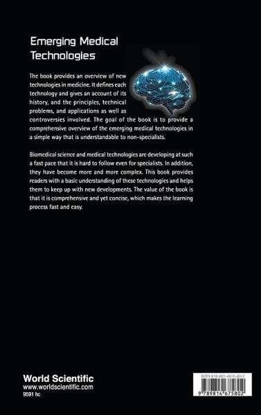 The book provides an overview of new technologies in medicine. It defines each technology and gives an account of its history, and the principles, technical problems, and applications as well as controversies involved. The goal of the book is to provide a comprehensive overview of the emerging medical technologies in a simple way that is understandable to non-specialists. Biomedical science and medical technologies are developing at such a fast pace that it is hard to follow even for specialists. In addition, they have become more and more complex. This book provides readers with a basic understanding of these technologies and helps them to keep up with new developments. The value of the book is that it is comprehensive and yet concise, which makes the learning process fast and easy.