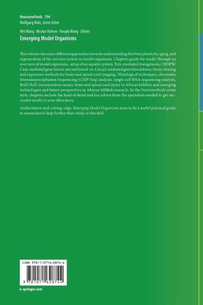 This volume discusses different approaches towards understanding the brain plasticity, aging, and regeneration of the nervous system in model organisms. Chapters guide the reader through an overview of model organisms, setup of an aquatic system, Tol2-mediated transgenesis, CRISPR/Cas9-mediated gene knock-out and knock-in, Cas13d-mediated gene knockdown, tissue clearing and expansion methods for brain and spinal cord imaging, Histological techniques, chromatin Immunoprecipitation Sequencing (ChIP-Seq) analysis, single-cell RNA sequencing analysis, BrdU/EdU incorporation assays, brain and spinal cord injury in African killifish, and emerging technologies and future perspectives in African killifish research. In the Neuromethods series style, chapters include the kind of detail and key advice from the specialists needed to get successful results in your laboratory.