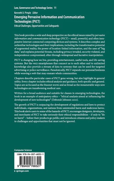 The growth of PICT is outpacing the development of regulations and laws to protect individuals, organizations, and nations from unintended harm and malicious havoc. This book alerts users to some of the hazards of PICT; encourages designers, developers, and merchants of PICT to take seriously their ethical responsibilities - if only to "do no harm" - beforetheir products go public; and introduces citizens and policy makers to challenges and opportunities that must not be ignored.