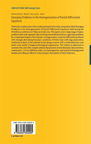 This book contains some of the results presented at the mini-symposium titled Emerging Problems in the Homogenization of Partial Differential Equations, held during the ICIAM2019 conference in Valencia in July 2019. The papers cover a large range of topics, problems with weak regularity data involving renormalized solutions, eigenvalue problems for complicated shapes of the domain, homogenization of partial differential problems with strongly alternating boundary conditions of Robin type with large parameters, multiscale analysis of the potential action along a neuron with a myelinated axon, and multi-scale model of magnetorheological suspensions. The volume is addressed to scientists who deal with complex systems that presents several elements (characteristics, constituents...) of very different scales, very heterogeneous, and search for homogenized models providing an effective (macroscopic) description of their behaviors.