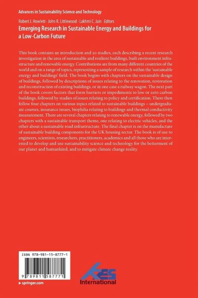 Cultural Wagon in Villa María, Córdoba, Argentina.- Sustainable Housing Solutions.- Investigating the Application of LEED And BREEAM Certification Schemes for Buildings In Kazakhstan.- Coordinated Control Strategy to Improve Performance of PMSG Wind Power Systems.- Examining Undergraduate Courses Relevant to the Built Environment in the 4IR Era: A Delphi Study Approach.- Future Energy-Related House Renovations in Sweden: One-Stop-Shop as a Guide of the Renovation Decision-Making Journey.- Replacing Fossil Fuels by On-Site Sources of Energy in a Residential Building in Chalus, Iran.- Spectral Analysis of a Smart Switchable Polymer Dispersed Liquid Crystal (PDLC) Glazing for Building Application.- Crisis of Institutional Change: Improving Restoration and Reconstruction Methods for Estate Cultural Heritage.- System Dynamics Analysis of Energy Policies on Buildings Performance.- New Methodology for Measuring the Thermal Conductivity of Small Samples Using the Boxes Method With Reduced Sensors.- Simulation of an Adsorption Machine with Auxiliary Heater For CO2 - Neutral Air Conditioning of Electric Utility Vehicles.- Barriers to the Adoption of Zero Carbon Emissions In Buildings: The South African Narrative.- An Appraisal of the Level of Awareness and Adoption of Insurance Policies on Sustainable Construction.- Sustainable Road Infrastructure in Rural Areas in South Africa - A Preliminary Study.- To What Extent Is Biophilia Implemented in the Built Environment to Improve Health and Wellbeing? ? State of the Arts Review and a Holistic Biophilic Design Framework.- Greening Existing Garment Buildings: A Case of Sri Lanka.- Unearthing the Factors Impeding Sustainable Construction in Developing Countries ? A PLS-SEM Approach.- Designing Active Buildings.- The Possibility of Integrating Bio-Technologies into Building Envelops: A New Approach to Sustainable Buildings.