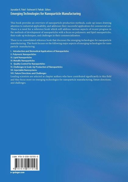 VII. Injectable Nanosystems VIII. Future Directions and Challenges Leading scientists are selected as chapter authors who have contributed significantly in this field and they focus more on emerging technologies for nanoparticle manufacturing, future directions, and challenges.