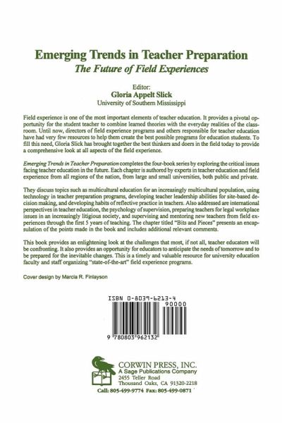 Foreword - Elden R Barrett Foreword - Aubrey K Lucas Introduction - Gloria Appelt Slick Using the Past; Guiding the Future - Scott Hopkins The New Psychology of Supervision - Arthur L Costa Promoting Reflective Practices - H Jerome Freiberg A Legal Primer for Student Teachers - Julie Fisher Mead and Julie K Underwood Field Experiences in Multicultural Environments - Rafael Lara-Alecio and Emilio Rendon Using Technology to Prepare Teachers - Joan P Sebastian Future Possibilities Developing Leadership in Preservice Teachers - Sandra Lee Gupton What Happens after Student Teaching - Genevieve Brown and Beverly J Irby The First Five Years Learning from International Field Experiences - Laura L Stachowski and James M Mahan Bits and Pieces - Gloria Appelt Slick and Kenneth Burrett Everything Else You Wanted to Know about Field Experiences of the Future