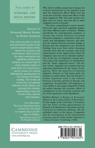 A short comprehensive survey for students of the causes and the social and economic effects of emigration from Europe between 1815 and 1930.
