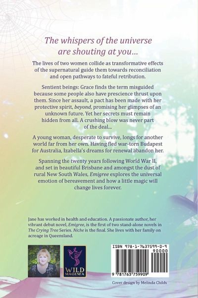 The whispers of the universe are shouting at you... The lives of two women collide as transformative effects of the supernatural guide them towards reconciliation and open pathways to fateful retribution. Sentient beings: Grace finds the term misguided because some people also have prescience thrust upon them. Since her assault, a pact has been made-with her protective spirit beyond-promising her glimpses of an unknown future, yet her secrets must remain hidden from all. A crushing blow was never part of the deal... A young woman, desperate to survive, longs for another world far from her own. Having fled war-torn Budapest for Australia, Izabella's dreams for renewal abandon her. Spanning the twenty years following World War II and set in beautiful Brisbane and amongst the dust of rural New South Wales, Emigree explores the universality of loss, and how a little magic will change lives forever.