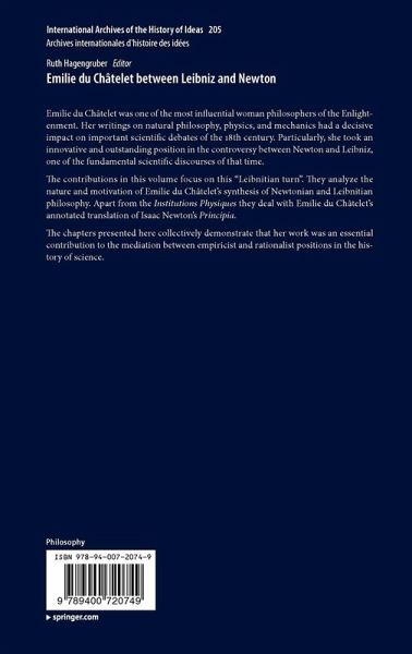 The contributions in this volume focus on this "Leibnitian turn". They analyze the nature and motivation of Emilie du Châtelet's synthesis of Newtonian and Leibnitian philosophy. Apart from the Institutions Physiques they deal with Emilie du Châtelet's annotated translation of Isaac Newton's Principia.