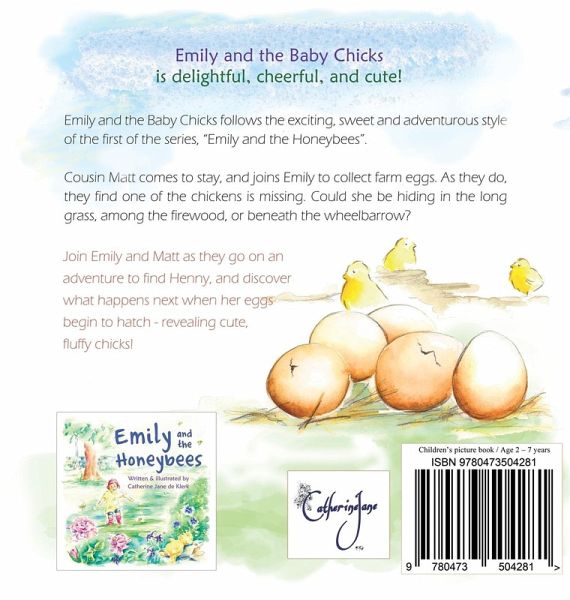 Emily and the Baby Chicks follows the exciting, sweet and adventurous style of the first of the series, "Emily and the Honeybees". Cousin Matt comes to stay, and joins Emily to collect farm eggs. As they do, they find one of the chickens is missing. Could she be hiding in the long grass, among the firewood, or beneath the wheelbarrow? Join Emily and Matt as they go on an adventure to find Henny, and discover what happens next when her eggs begin to hatch - revealing cute, fluffy chicks!