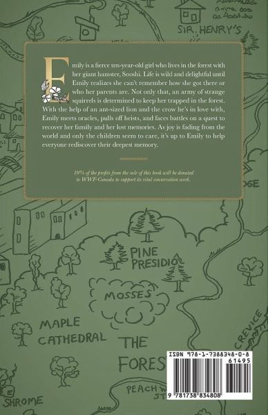 Emily is a fierce ten-year-old girl who lives in the forest with her giant hamster, Sooshi. Life is wild and delightful until Emily realizes she can't remember how she got there or who her parents are. Not only that, an army of strange squirrels is determined to keep her trapped in the forest. With the help of an ant-sized lion and the crow he's in love with, Emily meets oracles, pulls off heists, and faces battles on a quest to recover her family and her lost memories. As joy is fading from the world and only the children seem to care, it's up to Emily to help everyone rediscover their deepest memory.