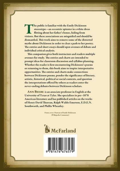 The public is familiar with the Emily Dickinson stereotype--an eccentric spinster in a white dress flitting about her father's house, hiding from visitors. But these associations are misguided and should be dismantled. This work aims to remove some of the distorted myths about Dickinson in order to clear a path to her poetry. The entries and short essays should open avenues of debate and individual critical analysis. This companion gives both instructors and readers multiple avenues for study. The entries and charts are intended to prompt ideas for classroom discussion and syllabus planning. Whether the reader is first encountering Dickinson's poems or returning to them, this book aims to inspire interpretative opportunities. The entries and charts make connections between Dickinson poems, ponder the significance of literary, artistic, historical, political or social contexts, and question the interpretations offered by others as they enter the never-ending debates between Dickinson scholars.