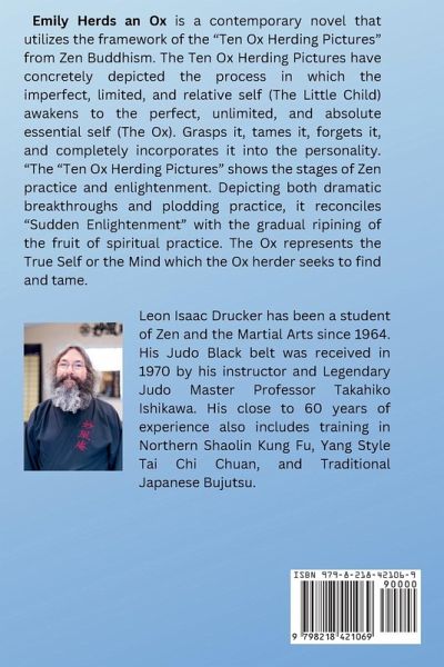 EMILY HERDS AN OX "TO LIVE A LIFE OF MEANING IN GRACE" Is a narrative through the ten stages of Zen practice and enlightenment.¿¿¿ Emily Herds an Ox is a contemporary novel that utilizes the framework of the "Ten Ox Herding Pictures" from Zen Buddhism. The Ten Ox-herding Pictures have concretely depicted the process in which the imperfect, limited, and relative self (the little child) awakens to the perfect, unlimited, and absolute essential self (the ox), grasps it, tames it, forgets it, and completely incorporates it into the personality. The "Ten Ox Herding Pictures" shows the stages of Zen practice and enlightenment. Depicting both dramatic breakthroughs and plodding practice, it reconciles "sudden enlightenment" with the gradual ripening of the fruit of spiritual practice. The ox represents the true self or the mind, which the ox herder seeks to find and tame. The "Ten Ox Herding Pictures," are a series of images and accompanying poems or commentaries that are part of the Zen Buddhist tradition. These pictures and texts symbolize the stages of a practitioner's progress toward enlightenment and his or her subsequent return to society to enact wisdom and compassion. The ten stages depicted in the ox herding pictures are as follows: Searching for the Ox: This represents the beginning of the spiritual path, where the practitioner is seeking enlightenment. Discovering the Footprints: The practitioner finds traces of the true nature of reality. Seeing the Ox: The first glimpse of enlightenment, or true nature. Catching the Ox: The difficult task of confronting and acknowledging one's own true nature. Taming the Ox: Learning to control one's own mind and passions. Riding the Ox Home: Achieving harmony with one's true nature. The Ox Forgotten, Leaving the Man Alone: A higher stage of enlightenment, where there is no distinction between the practitioner and the true nature. The Ox and Man Both Gone Out of Sight: Complete enlightenment, transcending all dualities. Returning to the Origin, Back to the Source: Returning to the world, recognizing that the source of enlightenment is in everyday life. Entering the Marketplace with Helping Hands: Engaging with the world compassionately, with an enlightened perspective. Each stage in this progression represents a deeper level of understanding and integration of Zen principles into one's life, culminating in the return to everyday life with a new, enlightened perspective on the world.
