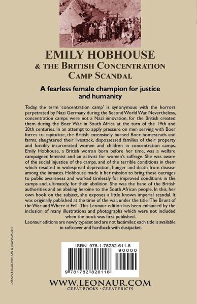 A fearless female champion for justice and humanity Today, the term ‘concentration camp’ is synonymous with the horrors perpetrated by Nazi Germany during the Second World War. Nevertheless, concentration camps were not a Nazi innovation, for the British created them during the Boer War in South Africa at the turn of the 19th and 20th centuries. In an attempt to apply pressure on men serving with Boer forces to capitulate, the British extensively burned Boer homesteads and farms, slaughtered their livestock, dispossessed families of their property and forcibly incarcerated women and children in concentration camps. Emily Hobhouse, a British woman born before her time, was a welfare campaigner, feminist and an activist for women’s suffrage. She was aware of the social injustice of the camps, and of the terrible conditions in them which resulted in widespread deprivation, hunger and death from disease among the inmates. Hobhouse made it her mission to bring these outrages to public awareness and worked tirelessly for improved conditions in the camps and, ultimately, for their abolition. She was the bane of the British authorities and an abiding heroine to the South African people. In this, her own book on the subject, she exposes a little known imperial scandal. It was originally published at the time of the war, under the title ‘The Brunt of the War and Where it Fell’. This Leonaur edition has been enhanced by the inclusion of many illustrations and photographs which were not included when the book was first published. Leonaur editions are newly typeset and are not facsimiles; each title is available in softcover and hardback with dustjacket.