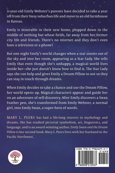 11-year-old Emily Webster's parents have decided to take a year off from their busy suburban life and move to an old farmhouse in Kansas. Emily is miserable in their new home, plopped down in the middle of nothing but wheat fields, far away from her former city life and friends. There's no internet and they don't even have a television or a phone! But one night Emily's world changes when a star zooms out of the sky and into her room, appearing as a Star Lady. She tells Emily that even though she's unhappy, a magical world lives inside her - she just doesn't know how to find it. The Star Lady says she can help and gives Emily a Dream Pillow to use so they can stay in touch through dreams. When Emily decides to take a chance and use the Dream Pillow, her world opens up. Magical characters appear and guide her on an adventure of self-discovery. After Emily discovers a Swan Feather pen, she's transformed from Emily Webster, a normal girl, into Emily Swan, a super-hero of words.