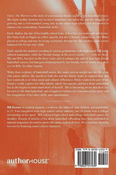 Emily, The Warrior is the story of a precocious female eighth grade basketball player. She fights neither demons nor mystical characters, but rather the real-life struggles of growing into a well-rounded young lady as she enters high school, still determined to improve her extraordinary basketball skills. Emily Barker, the star of her middle school team, is five feet, ten inches tall and skinny. Her limbs look as fragile as yellow pencils, but she is fiercely competitive. Her father played in college and may be living vicariously through her. Her mother wants a more balanced life for her only child. Emily spends her summers sweating in various gymnasiums with multi-racial and multi-cultural teammates, while her friends lounge at the town's pools . . . . .with the boys. She and Billy, her peer on the boys' team, plot to enhance the start of their high school basketball careers, but that gets misinterpreted by her friends, two of whom have their eye on Billy for other reasons. While there is plenty of basketball action, the reader gets an insight into the life of an elite junior athlete, the sacrifices both she and her family make to support that, and how teamwork over rides racial and cultural differences. Emily wants to be part of her friend's world, explore her other talents, satisfy her parents, and have them understand her as she begins to understand more of herself. She is becoming aware that there is a lot more to life than basketball, and struggles to balance her commitment her sport with her recognition of her other skills. and opportunities.