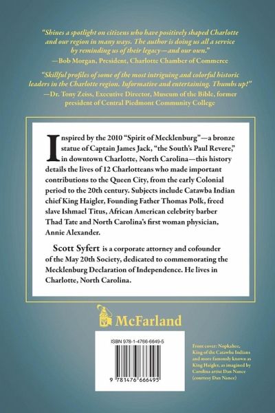 Inspired by the 2010 "Spirit of Mecklenburg"--a bronze statue of Captain James Jack, "the South's Paul Revere," in downtown Charlotte, North Carolina--this history details the lives of 12 Charlotteans who made important contributions to the Queen City, from the early Colonial period to the 20th century. Subjects include Catawba Indian chief King Haigler, Founding Father Thomas Polk, freed slave Ishmael Titus, African American celebrity barber Thad Tate and North Carolina's first woman physician, Annie Alexander.