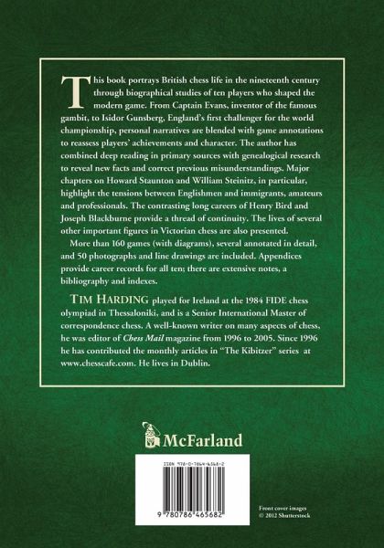 This book portrays British chess life in the nineteenth century through biographical studies of ten players who shaped the modern game. From Captain Evans, inventor of the famous gambit, to Isidor Gunsberg, England's first challenger for the world championship, personal narratives are blended with game annotations to reassess players' achievements and character. The author has combined deep reading in primary sources with genealogical research to reveal new facts and correct previous misunderstandings. Major chapters on Howard Staunton and William Steinitz, in particular, highlight the tensions between Englishmen and immigrants, amateurs and professionals. The contrasting long careers of Henry Bird and Joseph Blackburne provide a thread of continuity. The lives of several other important figures in Victorian chess are also presented. More than 160 games (with diagrams), several annotated in detail, and 50 photographs and line drawings are included. Appendices provide career records for all ten; there are extensive notes, a bibliography and indexes.