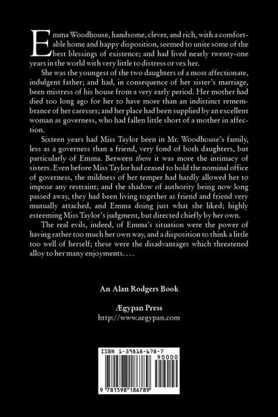 Emma Woodhouse, handsome, clever and rich, with a comfortable home and happy disposition, seemed to unite some of the best blessings of existence; and had lived nearly twenty-one years in the world with very little to distress or vex her. She was the youngest of the two daughters of a most affectionate, indulgent father; and had, in consequence of her sister's marriage, been mistress of his house from a very early period. Her mother had died too long ago for her to have more than an indistinct remembrance of her caresses; and her place had been supplied by an excellent woman as governess, who had fallen little short of a mother in affection. Sixteen years had Miss Taylor been in Mr. Woodhouse's family, less as a governess than a friend, very fond of both daughters, but particularly of Emma. Between them it was more the intimacy of sisters. Even before Miss Taylor had ceased to hold the nominal office of governess, the mildness of her temper had hardly allowed her to impose any restraint; and the shadow of authority being now long passed away, they had been living together as friend and friend very mutually attached, and Emma doing just what she liked; highly esteeming Miss Taylor's judgment, but directed chiefly by her own. The real evils, indeed, of Emma's situation were the power of having rather too much her own way, and a disposition to think a little too well of herself; these were the disadvantages which threatened alloy to her many enjoyments. . . .