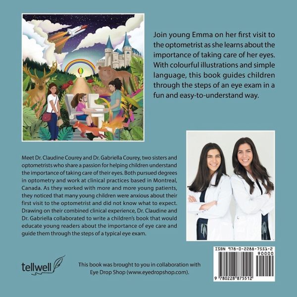 Meet Dr. Claudine Courey and Dr. Gabriella Courey, two sisters and optometrists who share a passion for helping children understand the importance of taking care of their eyes. Both pursued degrees in optometry and work at clinical practices based in Montreal, Canada. As they worked with more and more young patients, they noticed that many young children were anxious about their first visit to the optometrist and did not know what to expect. Drawing on their combined clinical experience, Dr. Claudine and Dr. Gabriella collaborated to write a children's book that would educate young readers about the importance of eye care and guide them through the steps of a typical eye exam.