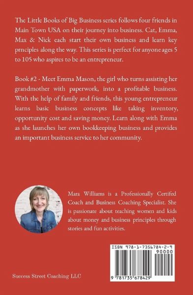 The Little Books of Big Business series follows four friends in Main Town USA on their journey into business. Cat, Emma, Max & Nick each start their own business and learn key prnciples along the way. This series is perfect for anyone ages 5 to 105 who aspires to be an entrepreneur. Book #2 - Meet Emma Mason, the girl who turns assisting her grandmother with paperwork, into a profitable business. With the help of family and friends, this young entrepreneur learns basic business concepts like taking inventory, opportunity cost and saving money. Learn along with Emma as she launches her own bookkeeping business and provides an important business service to her community.