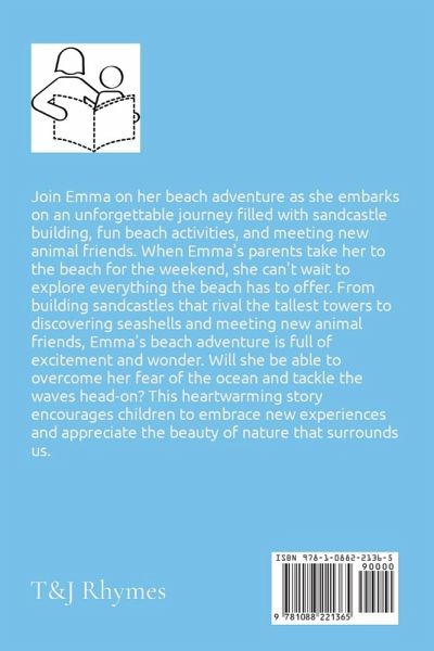 Join Emma on her beach adventure as she embarks on an unforgettable journey filled with sandcastle building, fun beach activities, and meeting new animal friends. When Emma's parents take her to the beach for the weekend, she can't wait to explore everything the beach has to offer. From building sandcastles that rival the tallest towers to discovering seashells and meeting new animal friends, Emma's beach adventure is full of excitement and wonder. Will she be able to overcome her fear of the ocean and tackle the waves head-on? This heartwarming story encourages children to embrace new experiences and appreciate the beauty of nature that surrounds us.