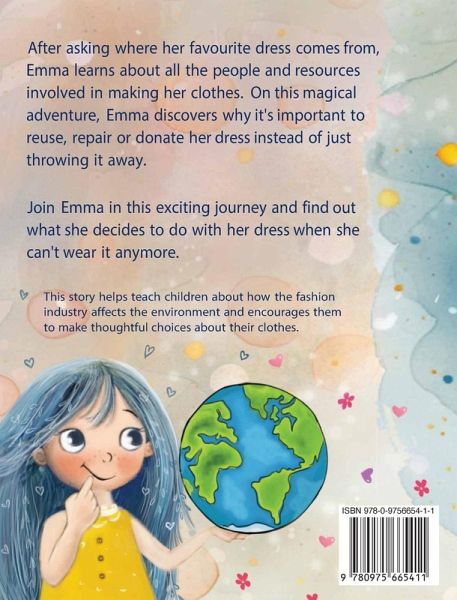 Emma goes on a journey to understand how her favourite dress is made. On this magical adventure, she learns why it's so important to reuse, repair, or donate her dress rather than throwing it away. Join Emma on this exciting adventure and find out what she decides to do with it when she can't wear it anymore. This is a lovely story for children aged 3 to 6 years, which teaches them about how the fashion industry affects the environment and encourages them to make thoughtful choices about their clothes.