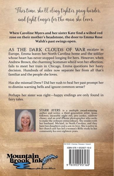 This time, she'll cling tighter, pray harder, and fight longer for the man she loves. When Caroline Myers and her sister Kate find a wilted red rose on their mother's headstone, the door to Emma Rose Walsh's past swings open. AS THE DARK CLOUDS OF WAR escalate in Europe, Emma leaves her North Carolina home and the soldier whose heart has never stopped longing for hers. However, when Andrew Brown, the charming Scotsman who'd won her affection, fails to meet her train in Chicago, Emma questions her hasty decision. Hundreds of miles now separate her from all that's familiar and the people she loves. Has she misread Drew? Did her rush to heal her past prompt her to dismiss warning bells and ignore common sense? Perhaps her sister is right-happy endings are only found in fairy tales.