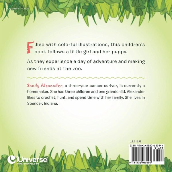 Filled with colorful illustrations, this children's book follows a little girl and her puppy. As they experience a day of adventure and making new friends at the zoo.