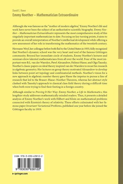 "Rowe's book is not only a further work on Noether's life and mathematical achievements but a much more comprehensive and more detailed one than its predecessors." (Karl-Heinz Schlote, Mathematical Reviews, May, 2022)