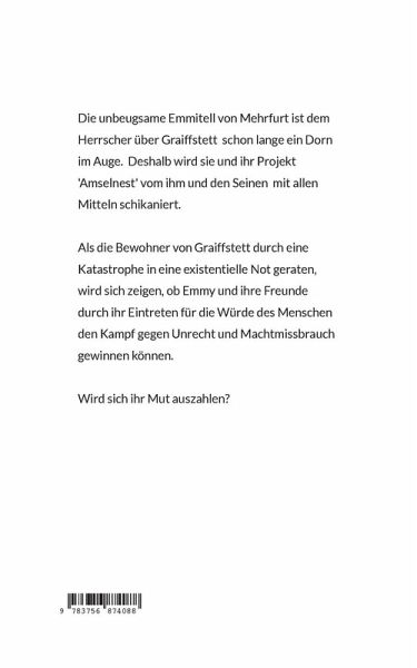 Die unbeugsame Emmitell von Mehrfurt ist dem Herrscher über Graiffstett schon lange ein Dorn im Auge. Deshalb wird sie und ihr Projekt 'Amselnest' vom ihm und den Seinen schikaniert.Als die Bewohner von Graiffstett durch eine Katastrophe in eine existentielle Not geraten, wird sich zeigen, ob Emmy und ihre Freunde durch ihr Eintreten für die Würde des Menschen den Kampf gegen Unrecht und Machtmissbrauch gewinnen können.Wird sich ihr Mut auszahlen?