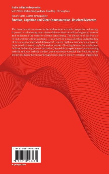 This book provides an answer to the readers about scientific perspective on learning. It presents a culminating point of four different kinds of studies designed to measure and understand the nuances of brain functioning. The objective of this book is to find answers to four questions: (1) can there be a neuroscientific understanding of the concept of individual differences? (2) does rhythmic sound or noise have an impact on decision making? (3) how does transfer of learning between the hemispheres facilitate the learning process? and lastly (4) beyond the accepted ways of communicating verbally and non-verbally is silent communication possible? This book makes an attempt to address these issues through various aspects of inner-conscious engineering.