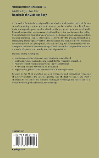 As the 66th volume in the prestigious Nebraska Series on Motivation, this book focuses on understanding emotion and motivation as two factors that not only influence social and cognitive processes, but also shape the way we navigate our social world. Research on emotion has increased significantly over the past two decades, pulling from scholarship in psychology, neuroscience, medicine, political science, sociology, and even computer science. This volume is informed by the growing momentum in the resulting interdisciplinary field of affective science, and examines the role of emotion and motivation in our perceptions, decision-making, and social interactions, and attempts to understand the neurobiological mechanisms that support these processes across the lifespan in both healthy and clinical populations.