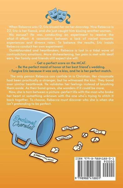 When Rebecca was 12, Eric kissed her on her doorstep. Now, Rebecca is 22, Eric is her fiancé, and she just caught him kissing another woman. His excuse? He was conducting an experiment to resolve the what-if effect: a correlation between a lack of varied romantic experiences and divorce rates. To balance the results, Eric insists Rebecca conduct her own experiment. Heartbroken, Rebecca is lost in a tidal wave of contradictory emotions. More disheartening, her pain is met with deaf ears. Her family and friends still expect she will: Get a perfect score on the MCAT. Be the perfect maid of honor at her best friend's wedding. Forgive Eric because it was only a kiss, and he is her perfect match. The only person Rebecca can confide in is Christian. Her classmate had been practically a stranger, but he witnessed the kiss. They bond over similar heartbreak. He validates her feelings instead of brushing them aside. As their bond grows, she wonders if it could be more. Now, she is torn between a picture-perfect life with the man who broke her heart or something unknown with the one who's trying to stitch it back together. To choose, Rebecca must discover who she is when she isn't pretending to be perfect.